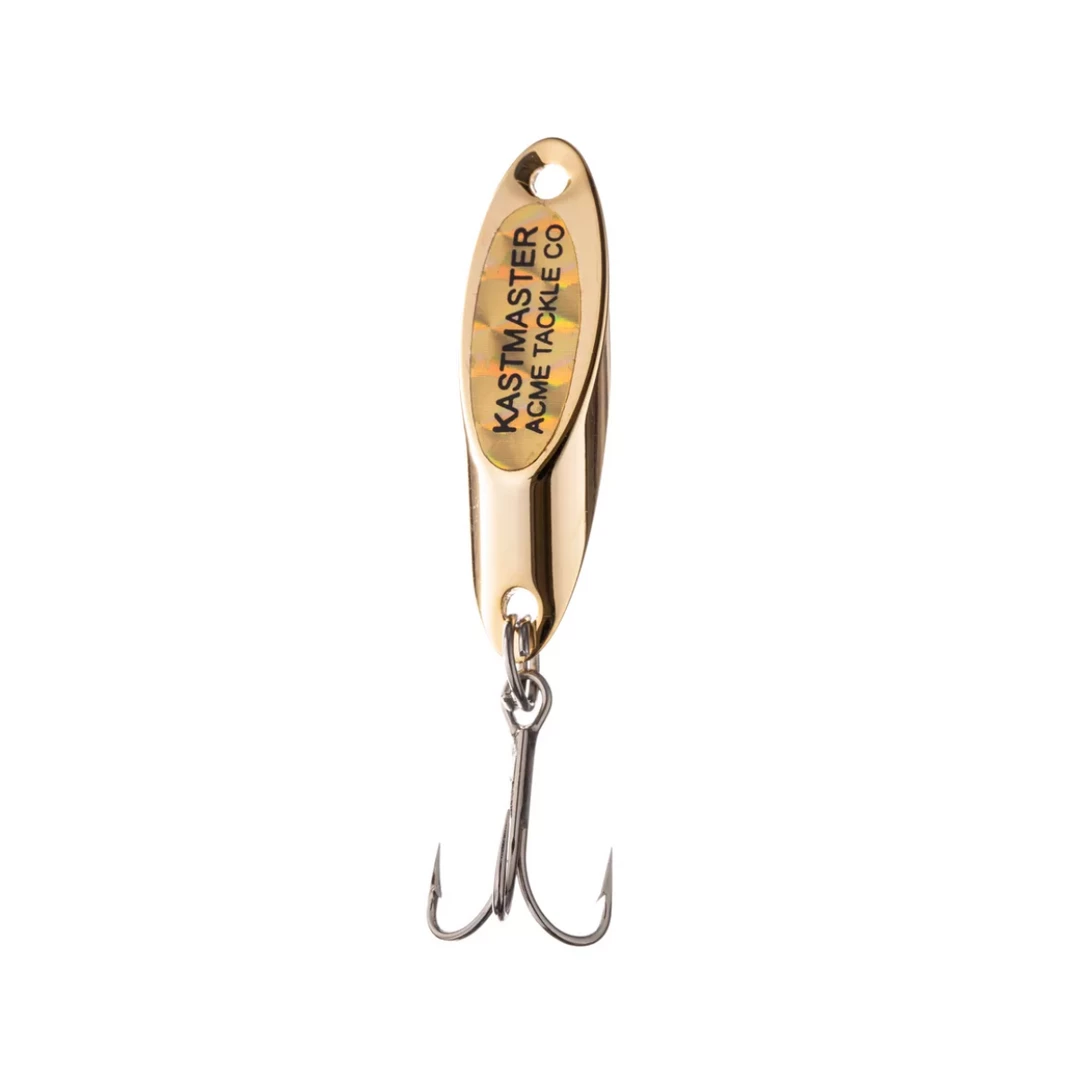 The Acme® Kastmaster® Spoon works on a special balance ratio that produces wild action without line twist. Thanks to its aerodynamic design, a Kastmaster Spoon “goes the distance,” setting the standard for long-cast lures. In both fresh and saltwater, this spoon catches fish, from pan-sized trout to huge stripers. The precision-machined Kastmaster won’t break, bend, or corrode, and can be counted on to retain its luster even after repeated use in saltwater.
