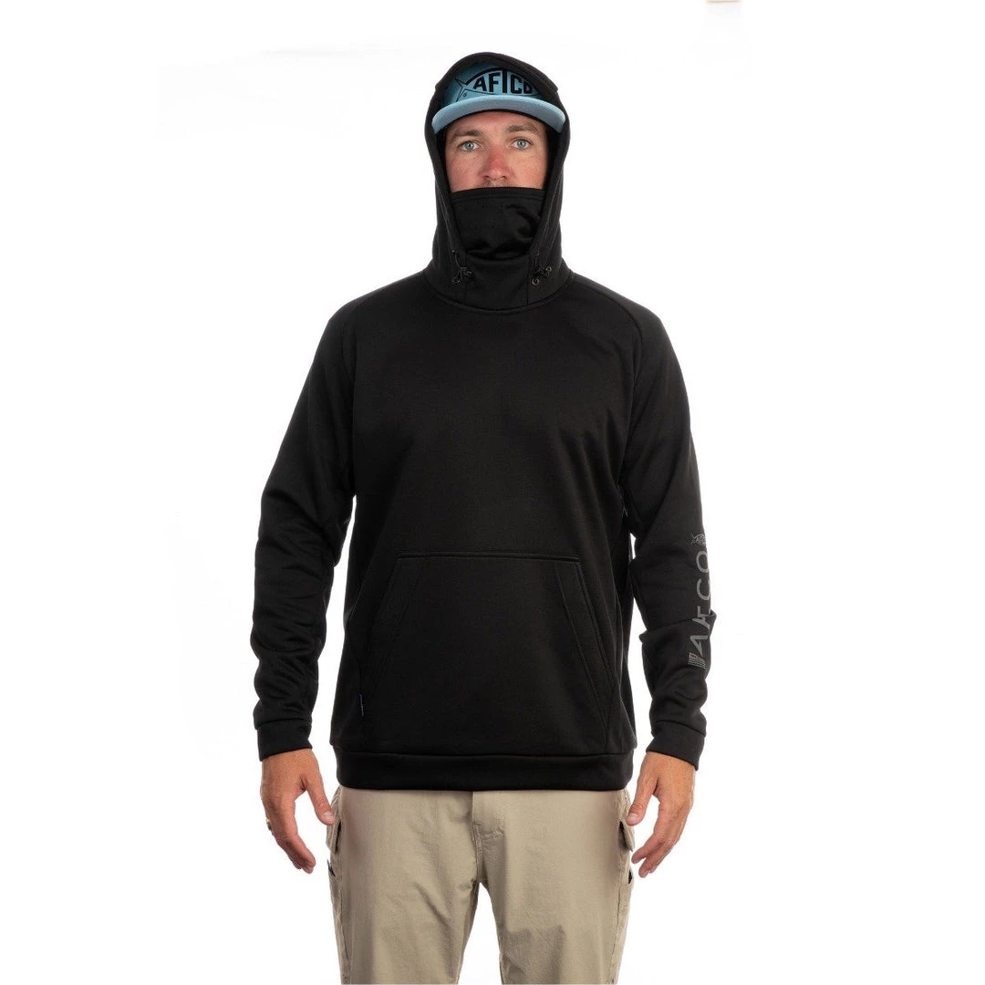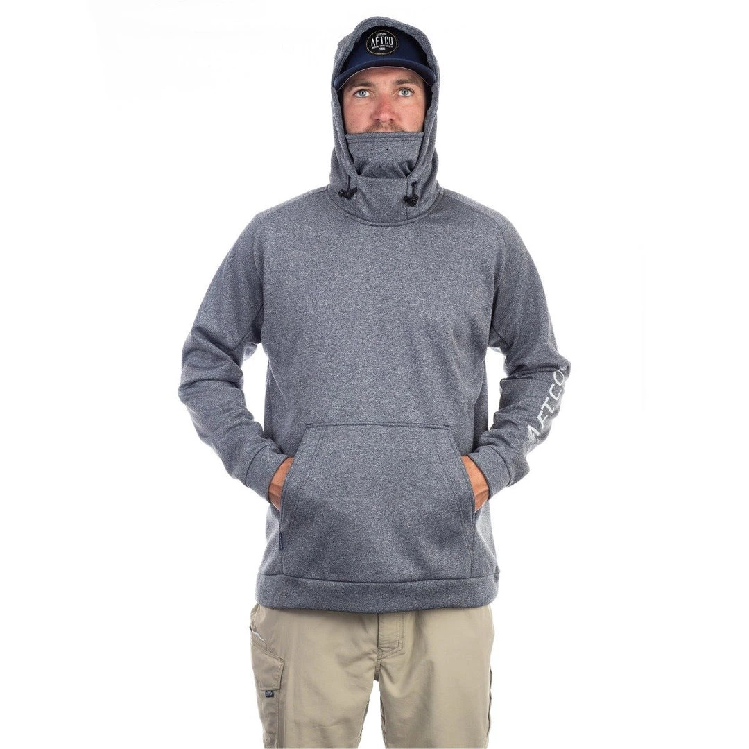 Reaper Fishing Hoodie with an integrated face mask and neck warmer. “Game Changer?” Too cliché for our taste, but AFTCO’s Reaper technical fleece fishing hoodie is definitely making the game a lot more comfortable. AFTCO delivers with technical features like laser cut ventilation on mask and underarm area, a hood with our cinch shock cord anchoring system designed specifically for both bass fishing and saltwater fisherman as they run in their boats at high speeds, Block Tapey pocket closure on the front pouch pocket, AFGUARD stain release and a toasty 100% polybonded microfleece fabric. No disrespect to our favorite cotton fishing hoodies, but this fishing sweatshirt will easily become a staple when things cool down and warmth is a necessity. The reaper is the best fishing hoodie available, and the fishing industry’s most popular technical hoodie thanks to AFTCO’s built a in face warmer. Wear as-is or as a crucial layering piece to stay warm on the water.