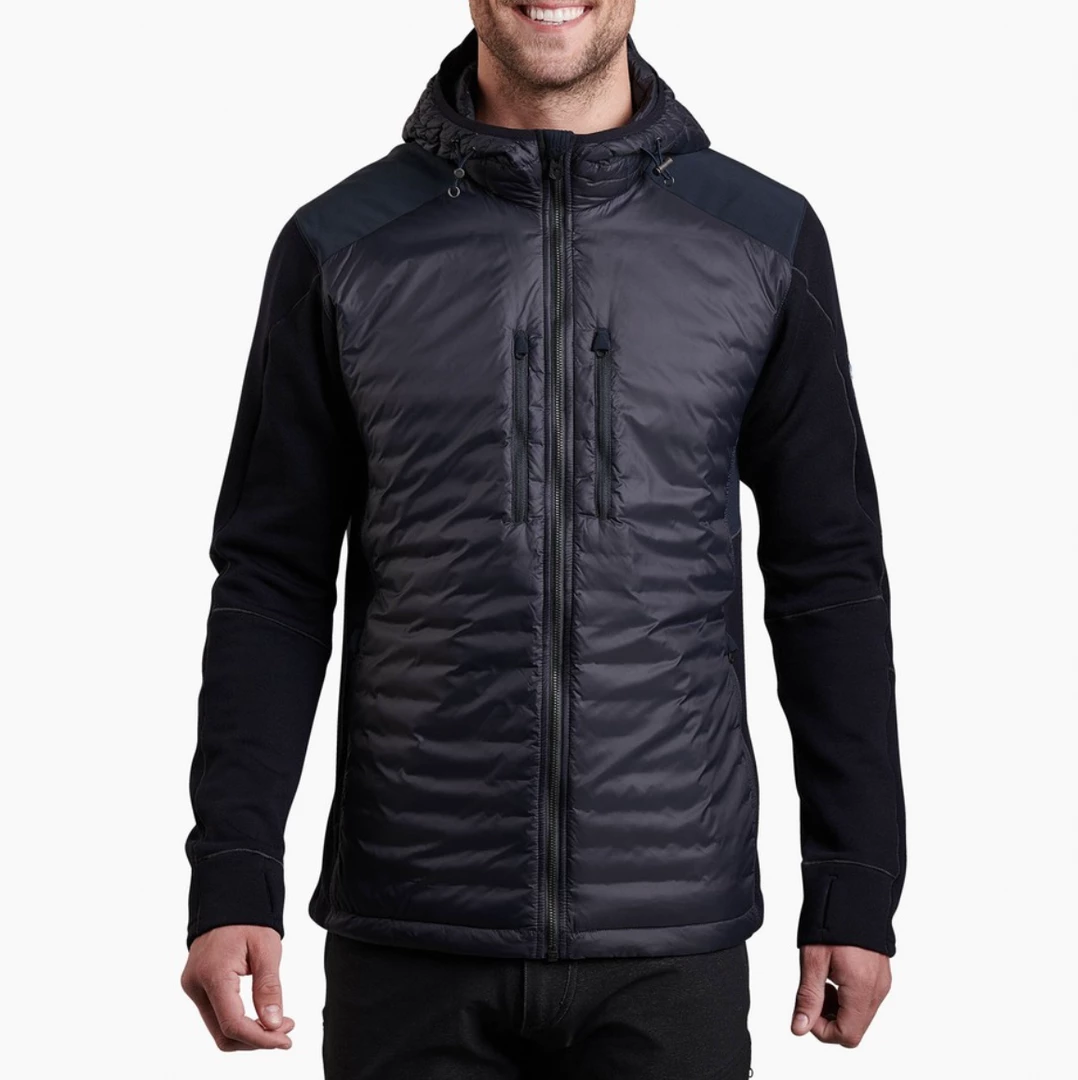 Stir up some action with the KÜHL PROVOCATEUR™ HYBRID Men’s Hoody. Combining RDS-Certified, 100% goose down insulation through the torso and hood with a premium wool blended fleece for sides and arms delivers the best of both worlds. Breathable comfort where you need it and warmth where you want it. Perfect for transitional climates.