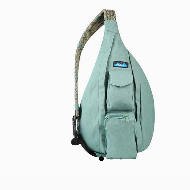 he Rope Sling fits the body like a bag should. It’s similar in size and design to its fraternal twin the KAVU Rope Bag with one exception: the Rope Sling is made of polyester, making it water resistant.