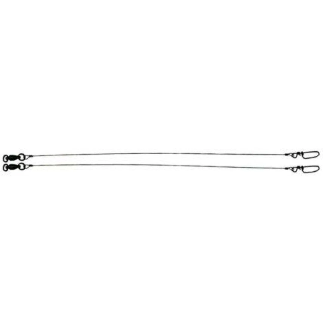 The Joe Bucher Musky Leader sets the standard for muskie and pike fishing. It’s made with stainless steel 7-strand wire.Ā Equipped with a sturdy coastlock snap on the business end. The 7-strand leader is great for use with crankbaits and subtle-action baits; it features tightly braided wire and a crane swivel. The single-strand leader is specially adapted for use with muskie-sized jerkbaits, with super flexibility, extra impact strength, and a ball-bearing barrel swivel.