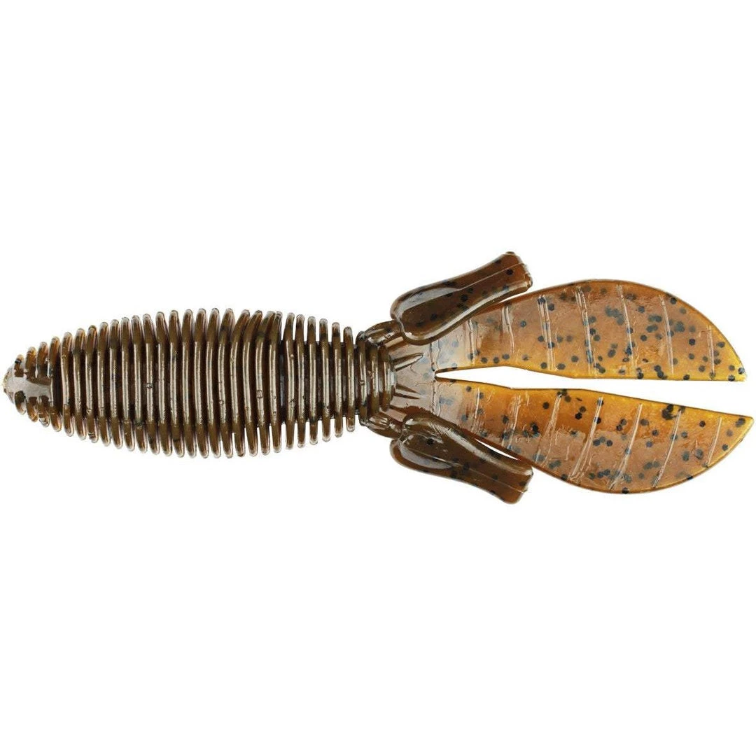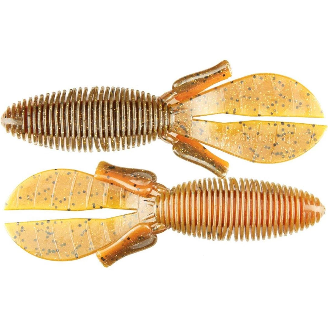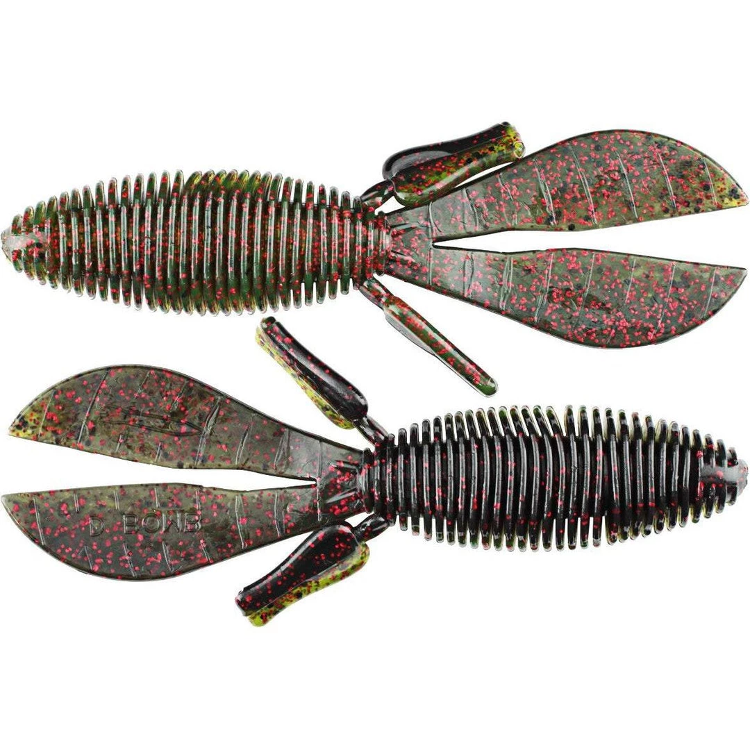 Pitching and flipping has a new go-to bait. The Missile Baits D Bomb is a bulky 4″ creature bait with a unique, ribbed body designed to displace lots of water, resulting in a straight fall. The tails sail when left connected or flap wildly when separated. The body is thinner where the hook comes out for easy hook sets, but has a thicker head so the bait stays on the hook.