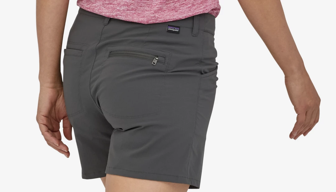 These lightweight hiking shorts are made of stretch-woven 94% nylon (62% recycled)/6% spandex with a DWR (durable water repellent) finish.
