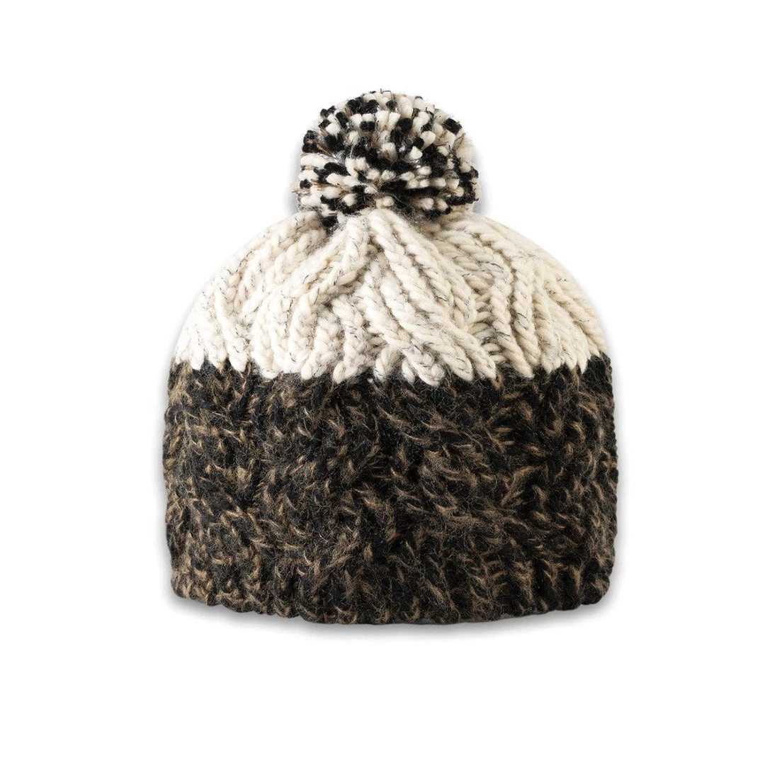 A hand-knit beanie, the Lavish has a super chunky, twist-knit pattern for a quintessential winter look. This women’s playful hat has a little extra volume so it can be worn tall or slouched. The pompom top, colorblocked look and accent yarn add extra elements of interest.