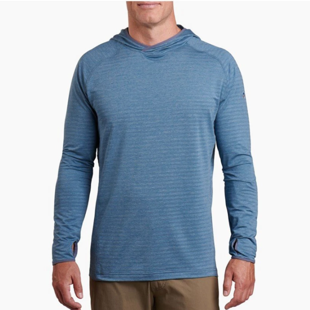 Stay cool and comfortable, longer, with the KÜHL AIRKÜHL™ HOODY. High wicking jersey fabric features striped mesh for more breathability; added odor resistant finish for freshness; and UPF 50+ for sun protection.