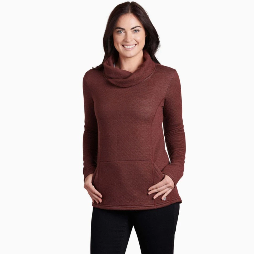 Embrace your inner warrior in the KÜHL ATHENA™ PULLOVER. Featuring luxurious mélange fabric, a rhombus pattern, and an oversized cowl neck, you’ll want to wear this unique pullover every day. The relaxed fit and kangaroo handwarmer pocket create a cozy, comfortable feel. Princess lines, center back seam, and dropped curved back hem add stylish, flattering details. Perfect for après-ski, cozy up in the ATHENA PULLOVER on chilly days and frosty nights.